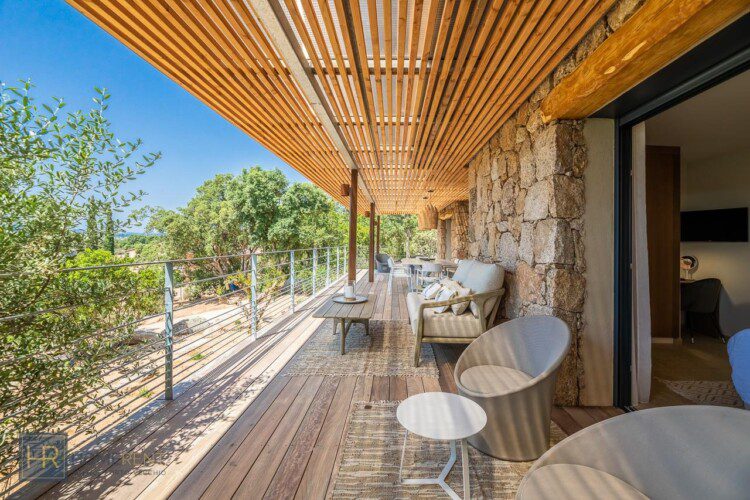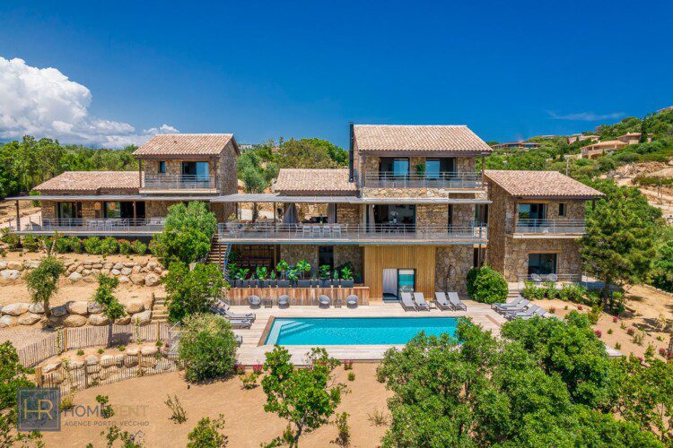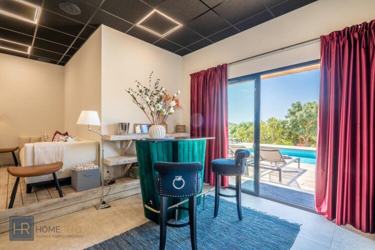 In der Nähe der Strände von St. Cyprien – Cabanon Bleu und Pinarello gelegen, bietet diese hervorragende Luxusvilla Wohnkunst und Komfort in der Nähe von Porto-Vecchio