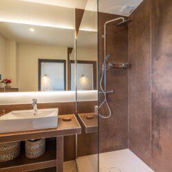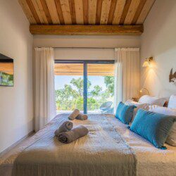 - Schlafbereich bestehend aus 2 Schlafzimmern mit 180 cm Betten, Gartenblick, TV, Abstellraum und eigenem Duschraum, Zugang zur Poolterrasse und zum Garten