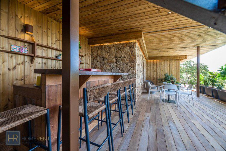 Hochwertige Ausstattung, Stein und Holz sind die vorherrschenden Materialien dieser Villa. Die moderne und warme Einrichtung sowie die vollklimatisierte Villa ermöglichen Ihnen einen Traumurlaub mit allem Komfort der Spitzenklasse.