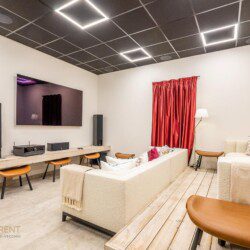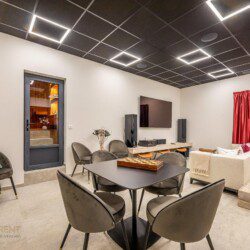 - Voll ausgestatteter Kinoraum mit Soundsystem und zahlreichen Lautsprechern