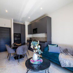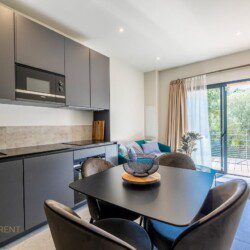 - Voll ausgestattete offene Küche, Backofen, Geschirrspüler, Nespresso, Esszimmer im Innenbereich.