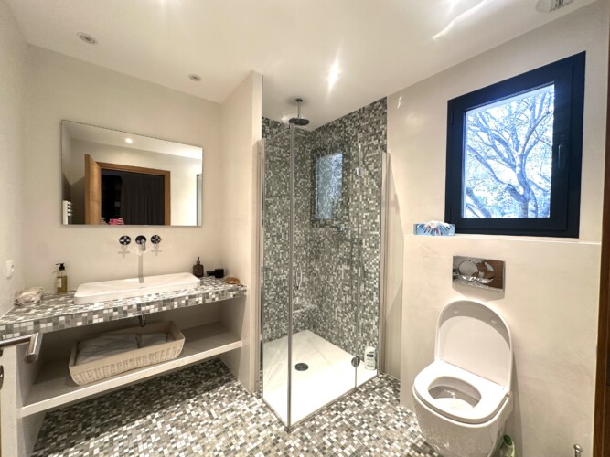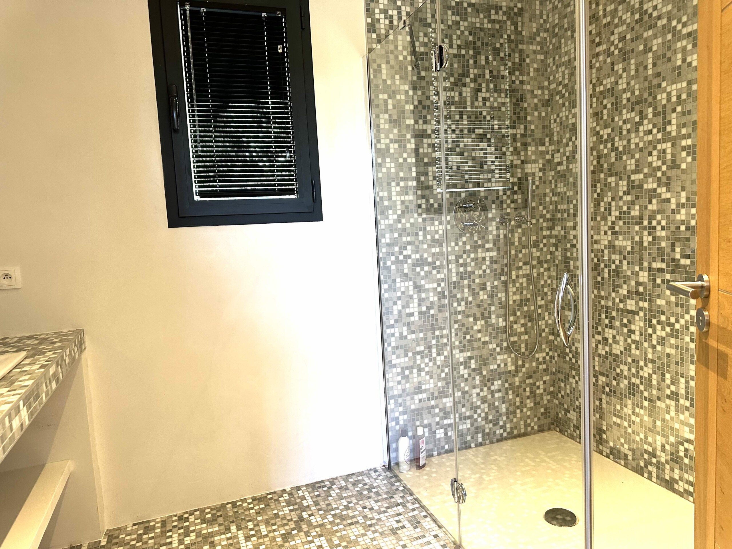 Die Villa -Miete bietet eine raffinierte und zeitgenössische Dekoration sowie einen großartigen Blick auf das Mittelmeer. Idealerweise befindet sich in einem vertraulichen privaten Feld mit Intimität und Ruhe. Die Villa -Miete ist vollständig luftgesteuert und verfügt über einen von einer IPE -Terrasse begrenzten Swimmingpool von 11 x 5 m. Das Dorf Ste Lucie kann in weniger als 5 Minuten mit dem Auto erreicht werden und bietet alle Geschäfte, den kleinen Markt, das medizinische Zentrum, die Ästhetik/Frisur, Bäckerei/Metzgerin, Apotheke, 2 Supermärkte… Die Villa Auf der Hauptebene:- Eintritt mit Freigabe