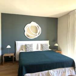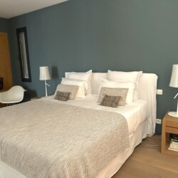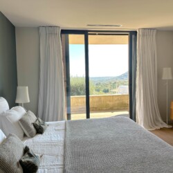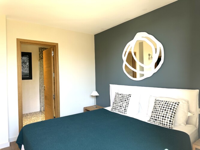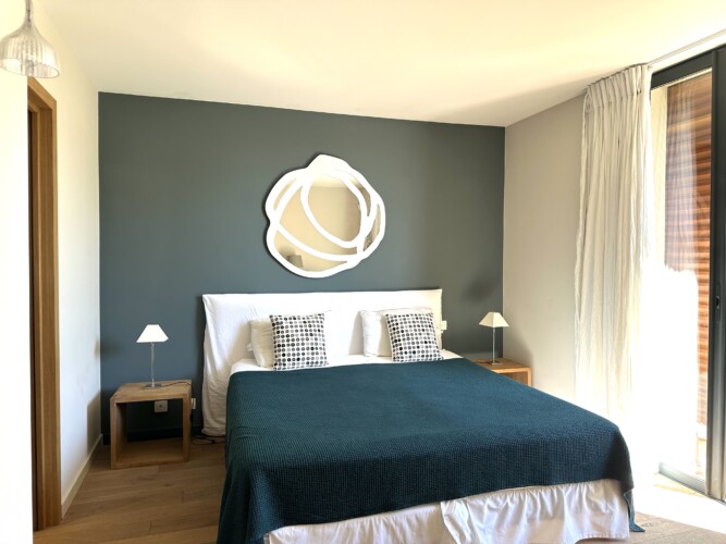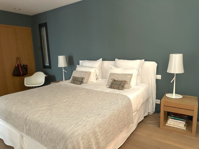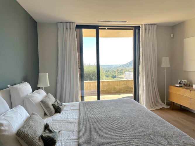 - Schlafzimmer mit 180 cm Bett, Schränke, Kommode, auf der Terrasse mit Meerblick.