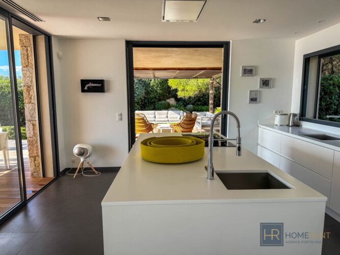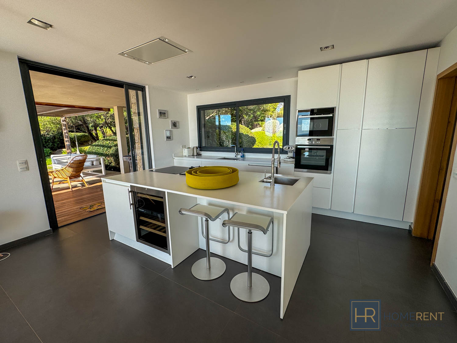 - Ein Wohnzimmer, ein Esszimmer und eine Küche mit zentraler Insel, perfekt ausgestattet (Induktionsplatten und großes Gasfeuer, Weinkeller, Eismaschine, 2 Geschirrspüler, 2 Waschbecken, 1 -Gand -Kühlschrank ...) alle großen Terrassen am Meer und Schwimmbad übersehen