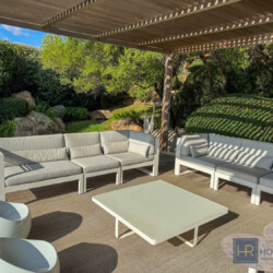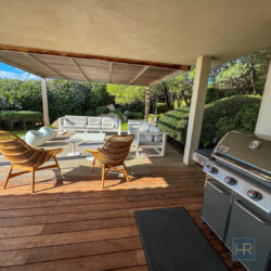 - Schöne Terrassen, deren hauptsächlich schattierte Hauptterrasse, ausgestattet mit einem Esstisch, komfortablen Outdoor -Sofas