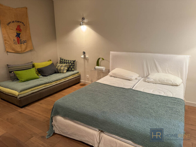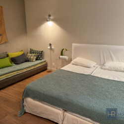 - Schlafzimmer mit 160 cm oder 2 x90 cm Bett, eine Bank und Lagerung