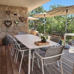 Die Villa basiert auf einem Grundstück von ungefähr 2.260 m2 in der prestigeträchtigen privaten Domäne von Punta d'Arasu. Es profitiert von der Aussicht auf das mediterrane Meer und Zugang zu 300 m in der Domaine Confidential Crique.