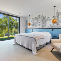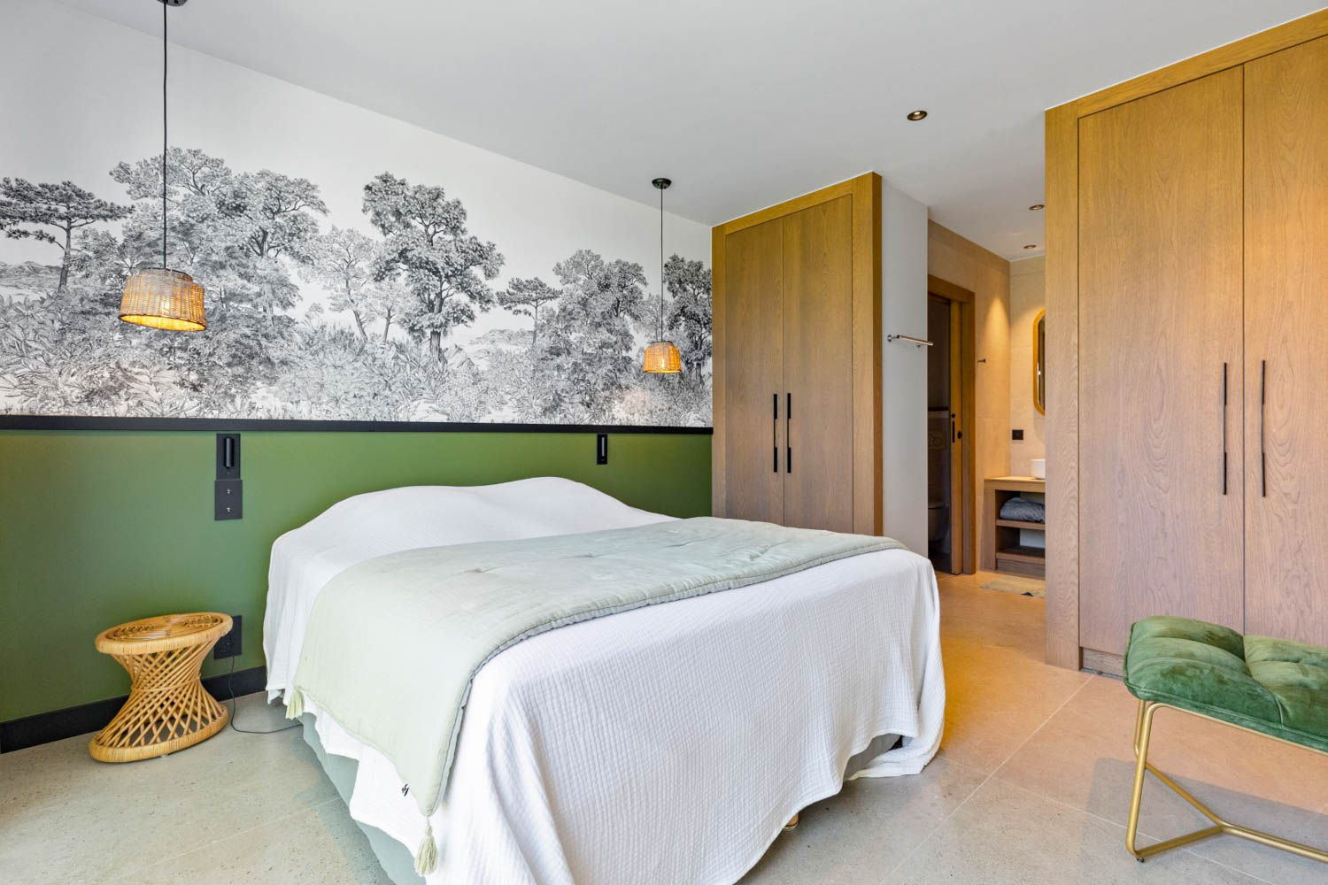 - Blue room : 180cm bed, storage, shower room + WC, garden access