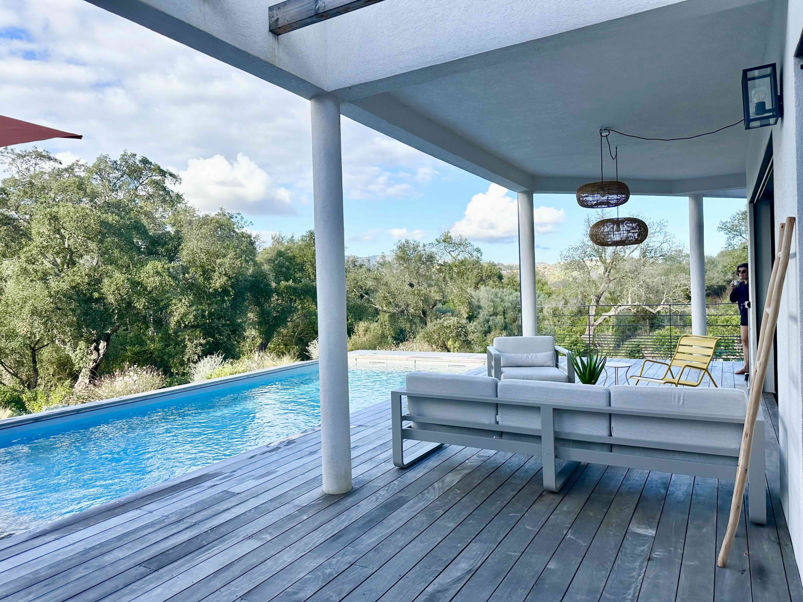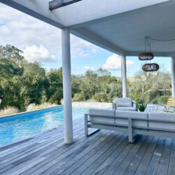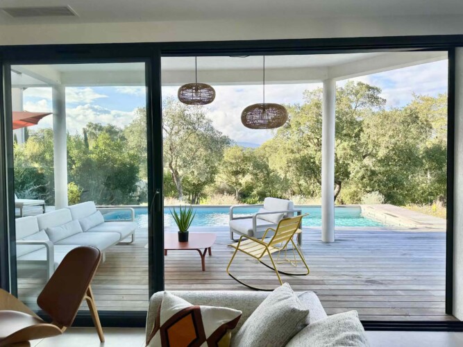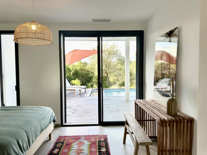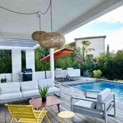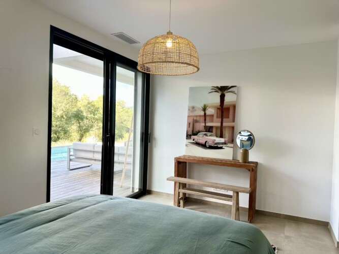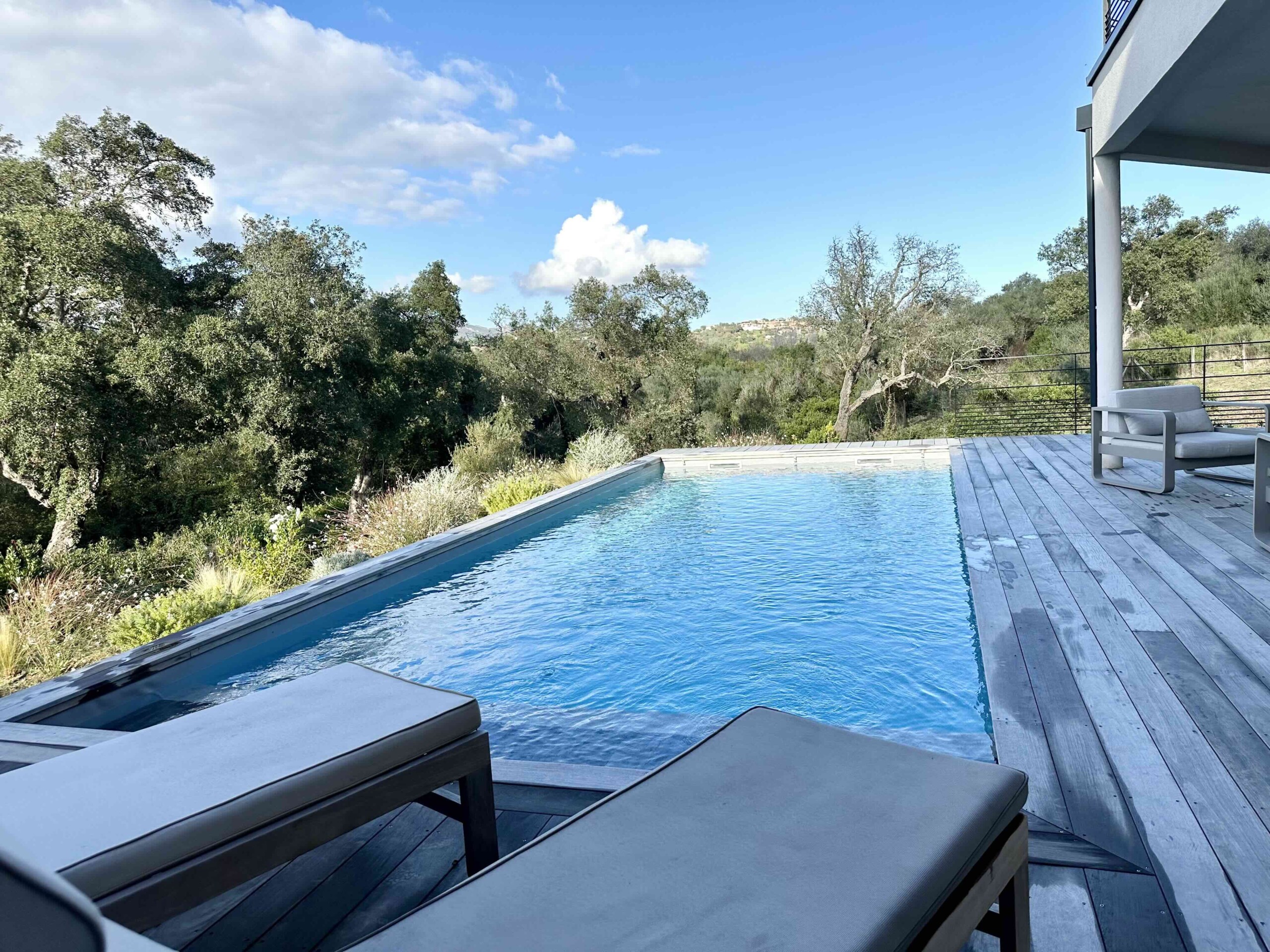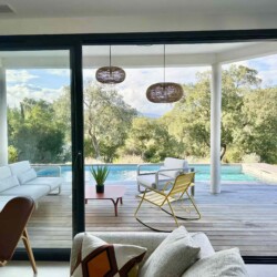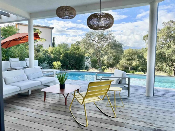 New villa rental ideally located a few steps from the Pinèrello Pinède beach offering intimacy and tranquility. The villa is in the town of Ste Lucie de Porto-Vecchio, between the village and the seaside of Pinarello. It offers a refined and contemporary decoration, beautiful volumes.