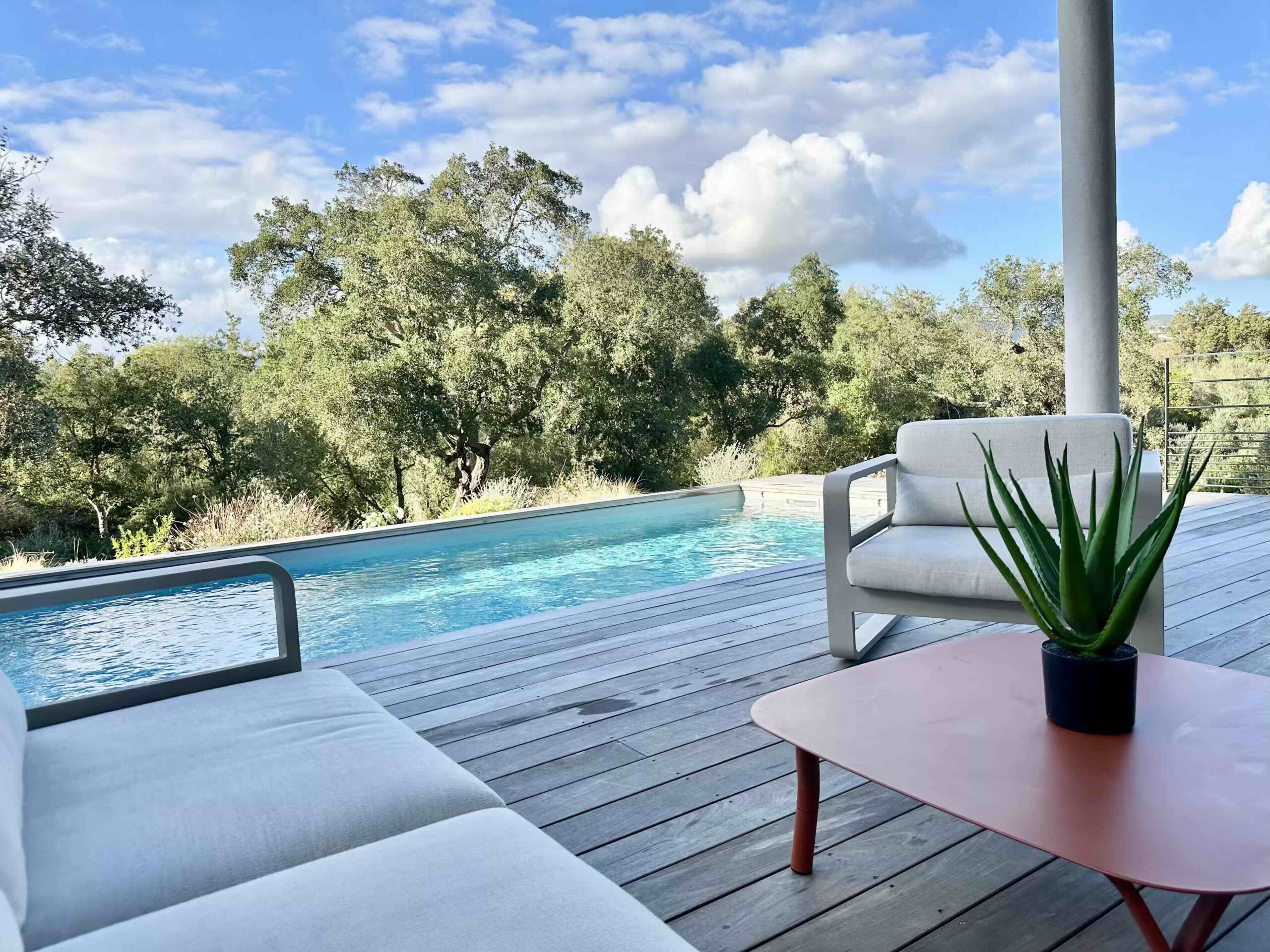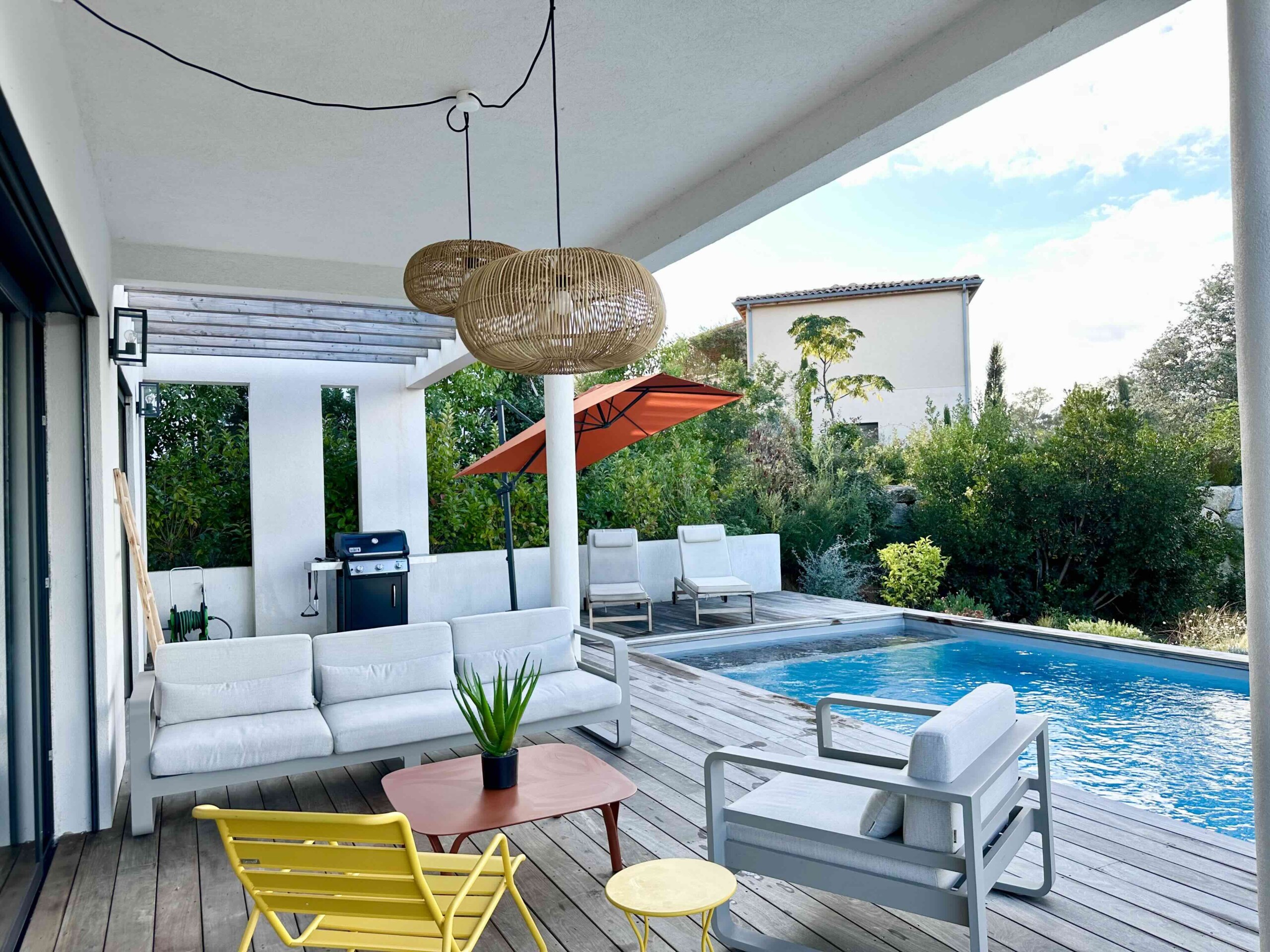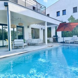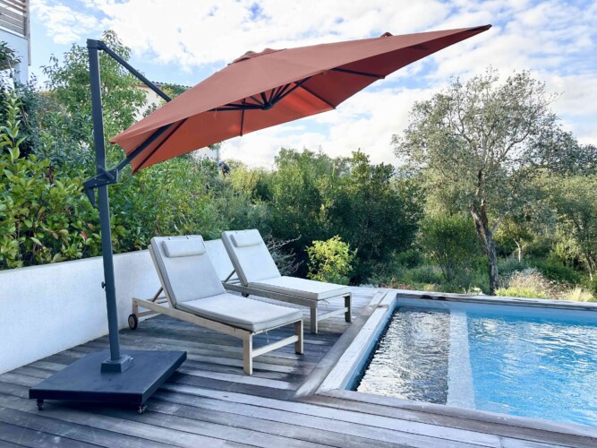 New villa rental ideally located a few steps from the Pinèrello Pinède beach offering intimacy and tranquility. The villa is in the town of Ste Lucie de Porto-Vecchio, between the village and the seaside of Pinarello. It offers a refined and contemporary decoration, beautiful volumes.