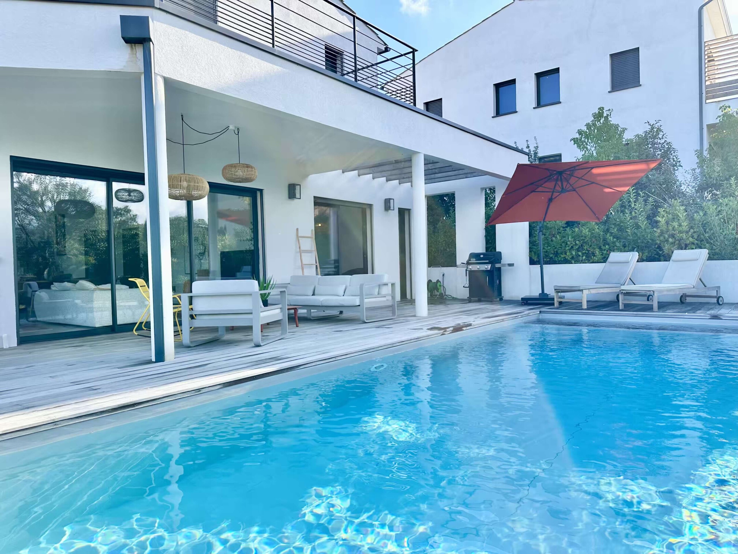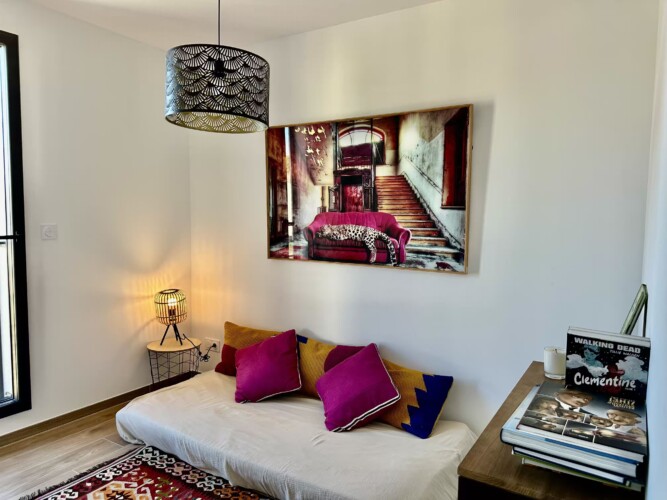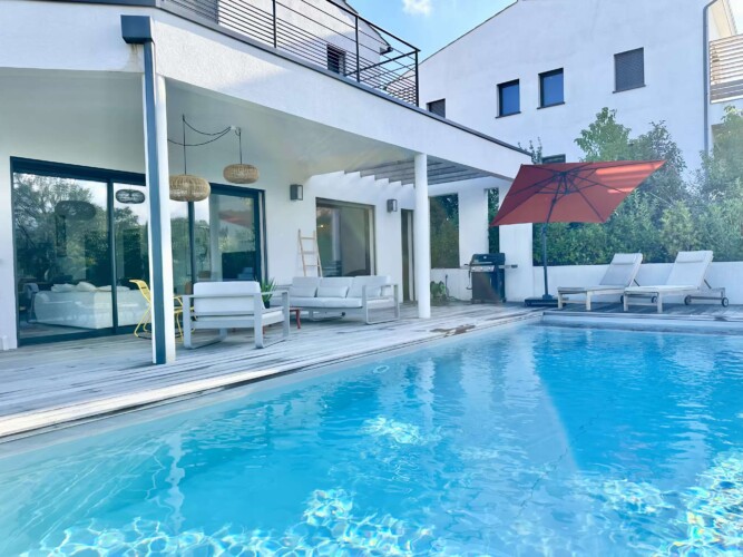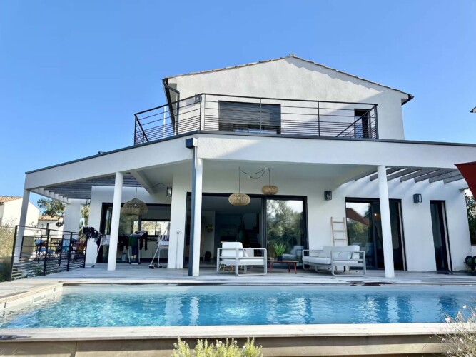 The villa has a 9 x 4.5 m swimming pool bordered by a terrace, the set is built on a fitted and enclosed land of 1,600 m².