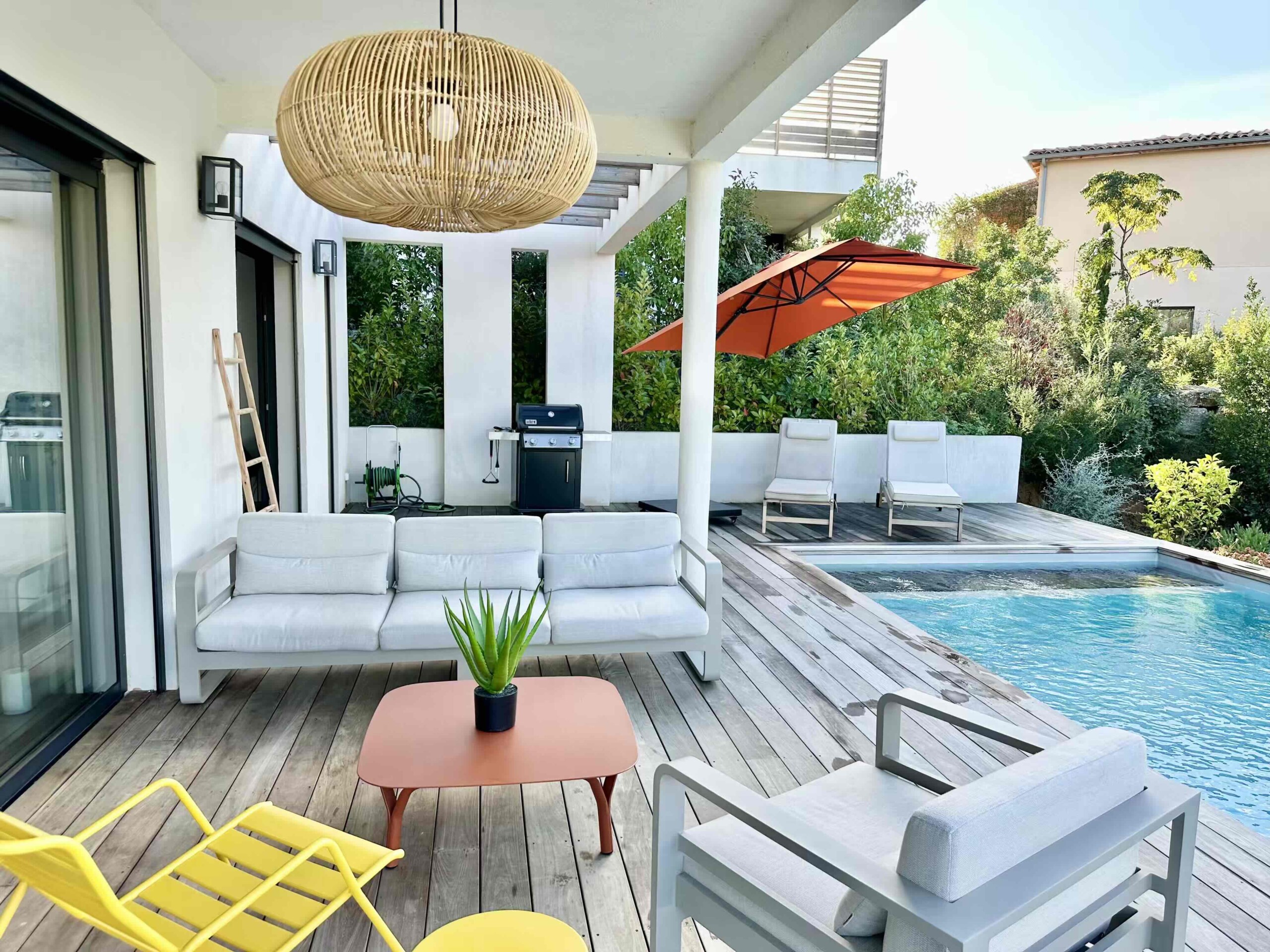- Beautiful terraces whose mainly shaded main terrace, equipped with a dining table, comfortable outdoor sofas