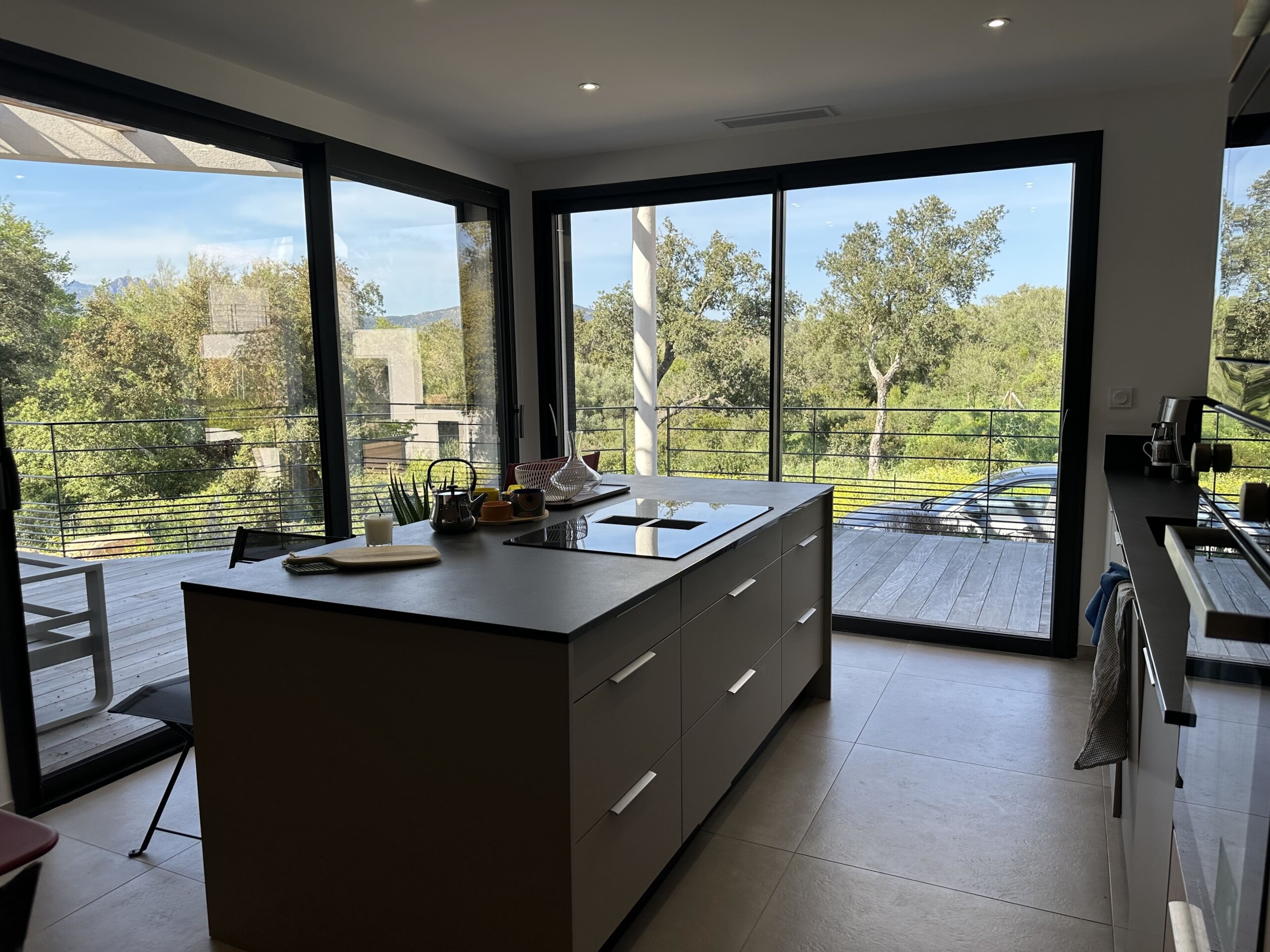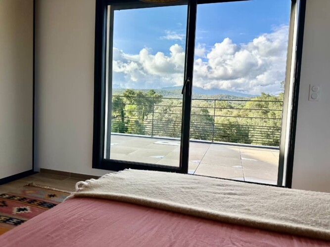 The villa is built on a plot of approximately 1,600m2 fully fenced. It benefits from a clear mountain view, and access on foot to the beaches and restaurants by the sea on Pinarello beach .