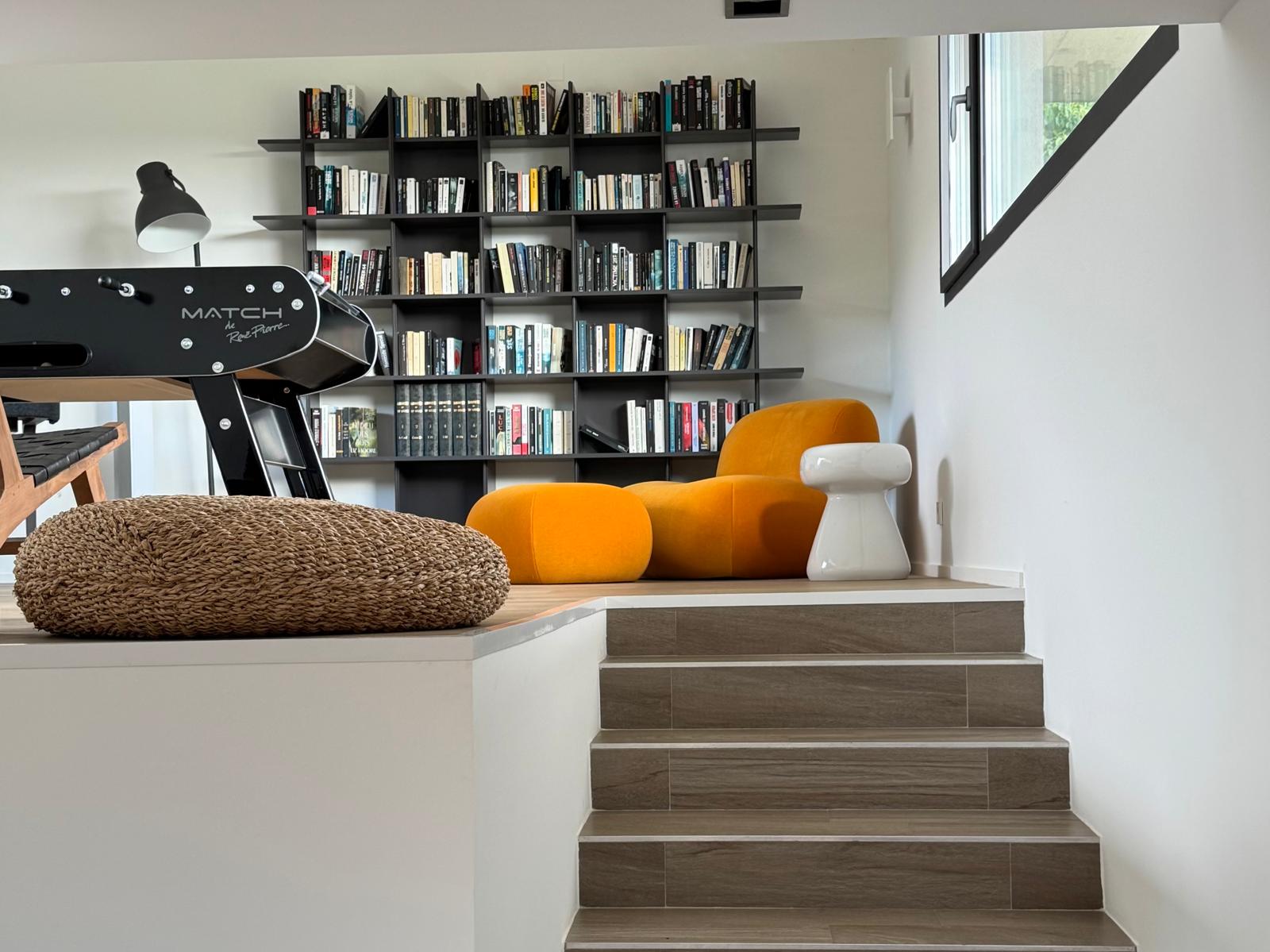 The patio with an area of 230m 2 , located in a peaceful hamlet, very close to the beaches and shops. The villa is composed as follows: 4 bedrooms including a parental suite upstairs with its large bathroom (shower, bath, WC), a relaxation room with billiard table, 2 bedrooms with 140 beds giving the patio each with their bathroom, a double bed bed (140) with shower room. Fully equipped kitchen with pantry for storage, washing machine and dryer. The house is fully air -conditioned, except a children's room, but which remains fresh. The villa is carefully decorated, equipped to bring you all the necessary comfort. It is articulated around its adorable patio, which allows an opening on almost each of the living rooms. The exteriors La Villa, built on a plot of approximately 1500m2, is fitted out to fully enjoy the beautiful days, outdoor lounge area shaded by shade sail, and a pergola on the pool side for your meals in the shade. Home linen and 6 hours of weekly cleaning included