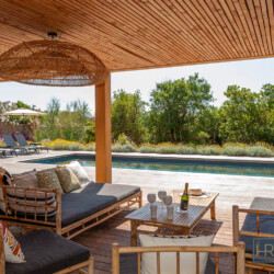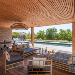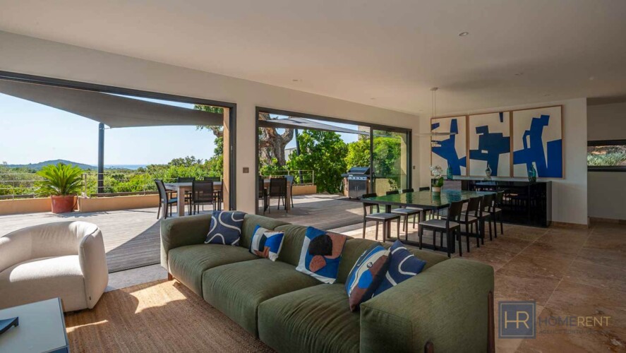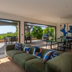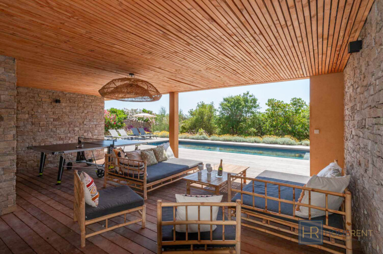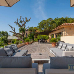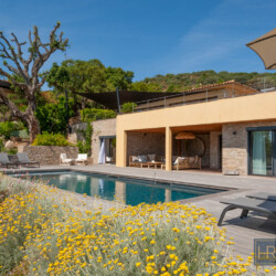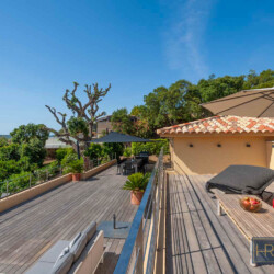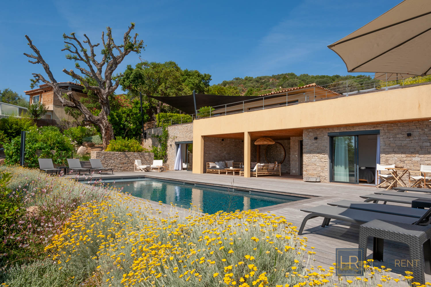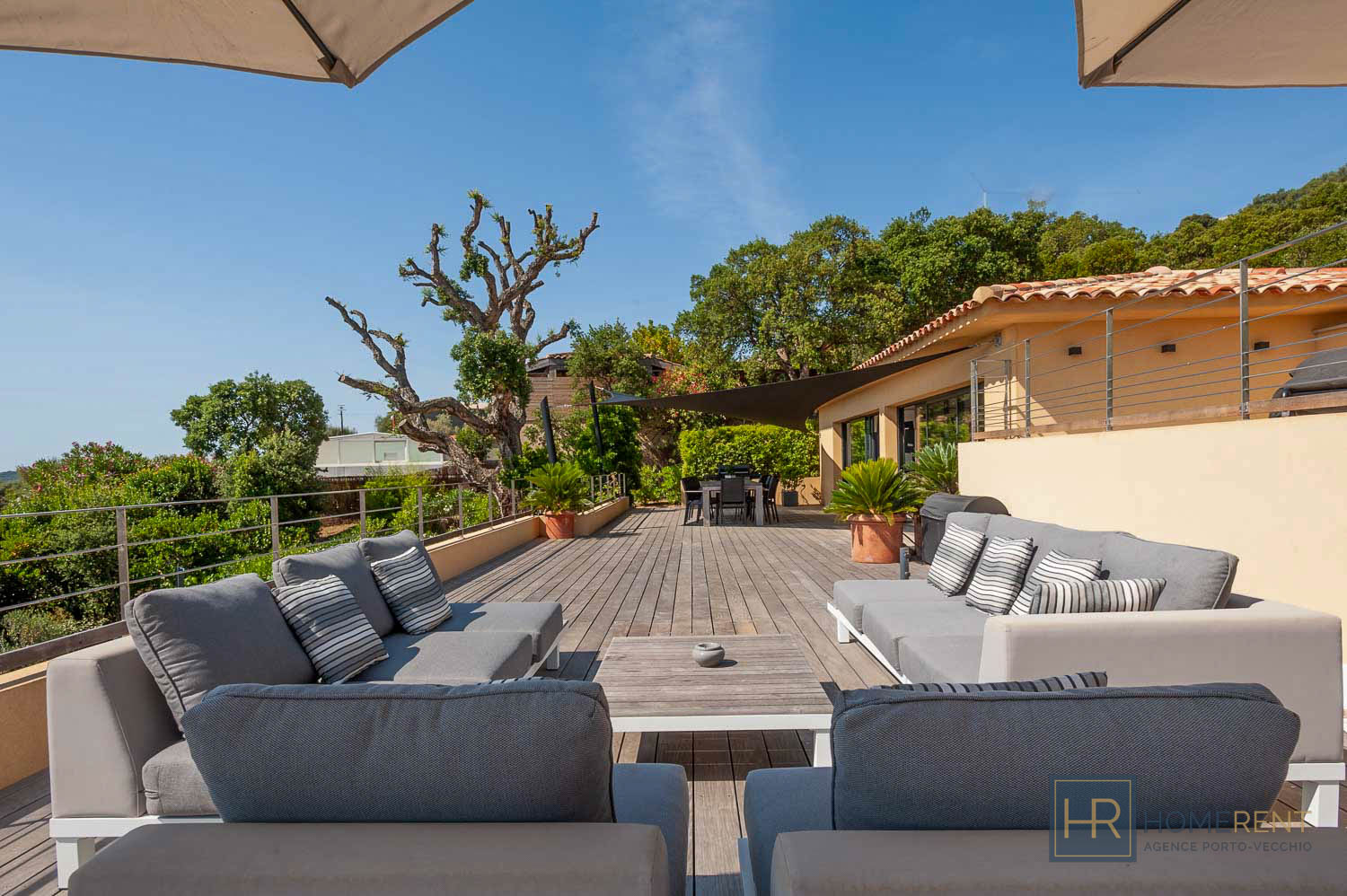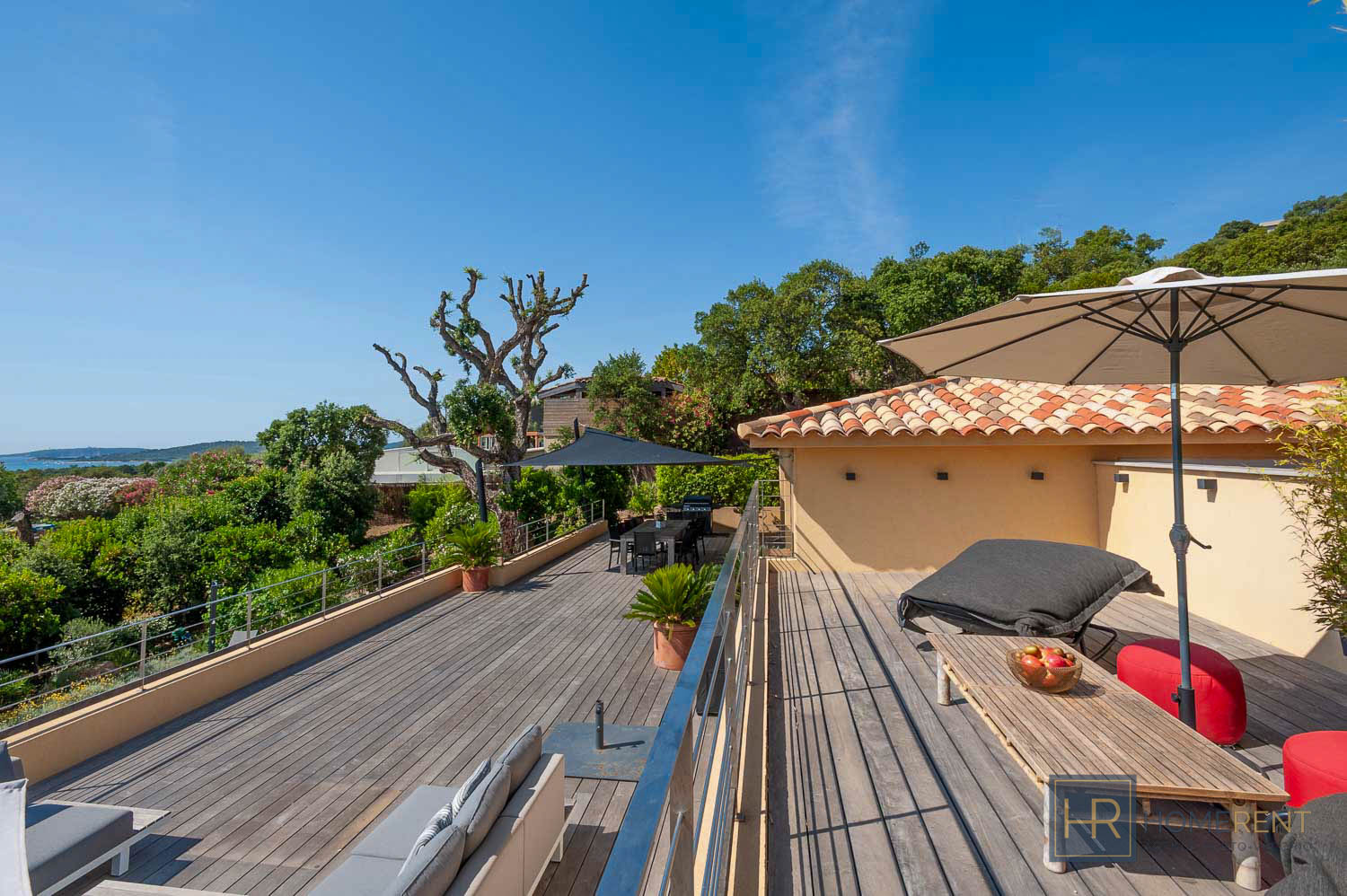 La villa offre 4 terrazze, tra cui la terrazza principale al piano superiore con vista mare, con la sua splendida vela ombreggiante, attrezzata con tavolo per pranzi all'aperto, barbecue/plancha, mobili da giardino, solarium con vista mare e una magnifica terrazza ombreggiata al piano inferiore, arredata con zona lounge, con vista sulla piscina e lettini prendisole.