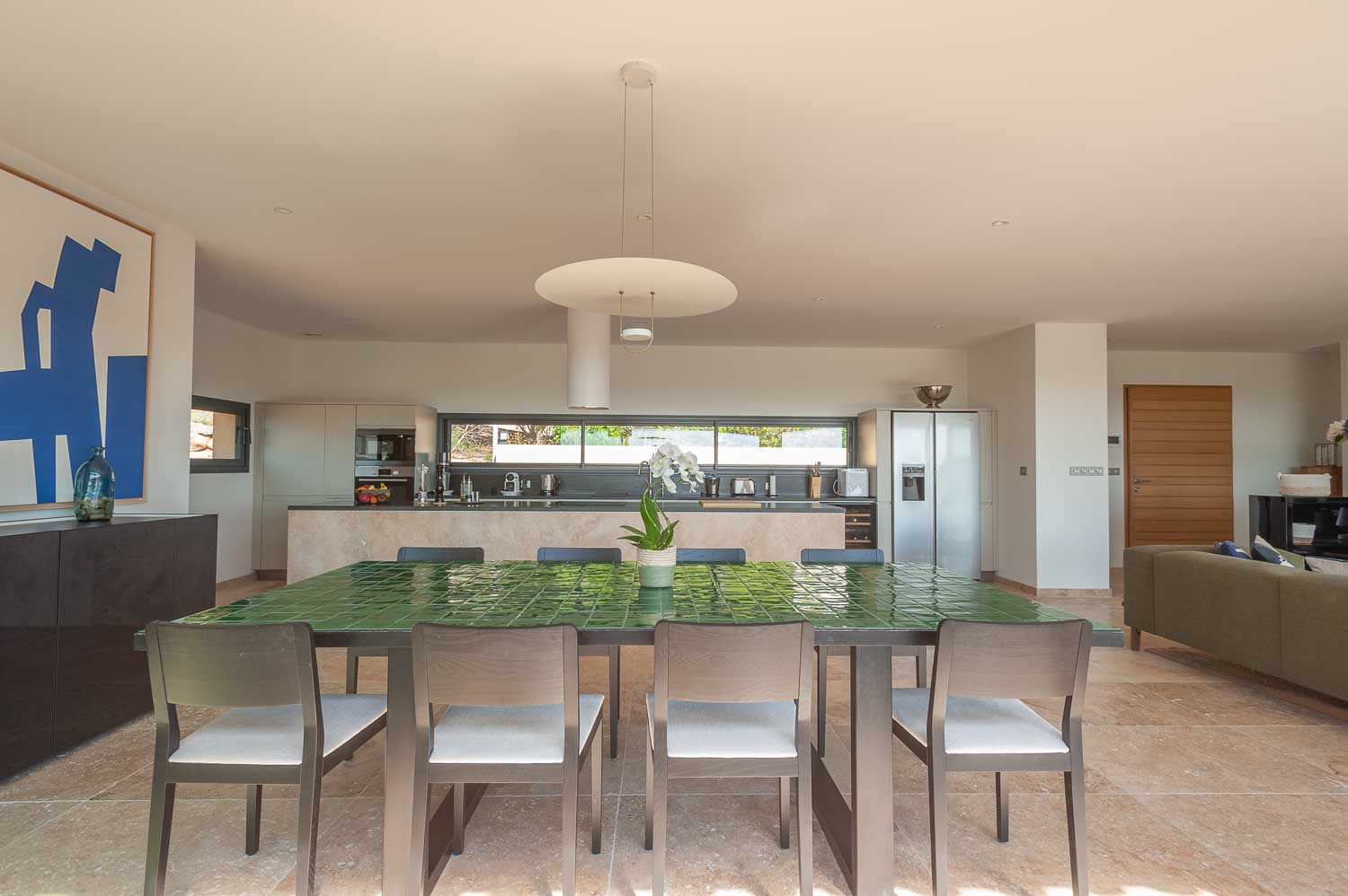- Cucina aperta con frigorifero americano, cantina per vini, forno, microonde, lavastoviglie, grande isola centrale con piani cottura a induzione.