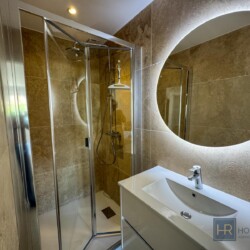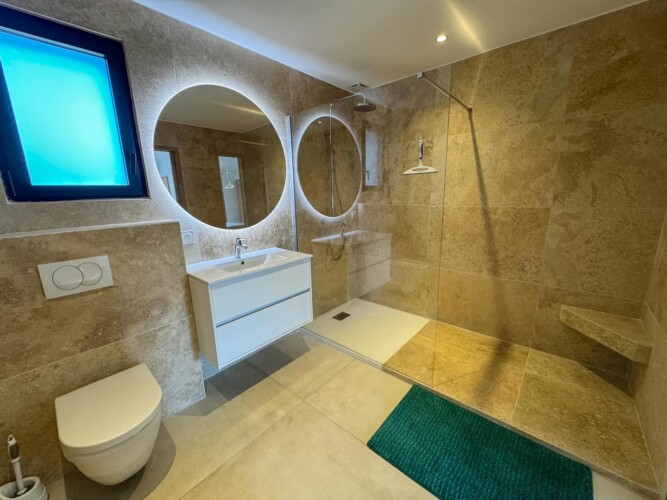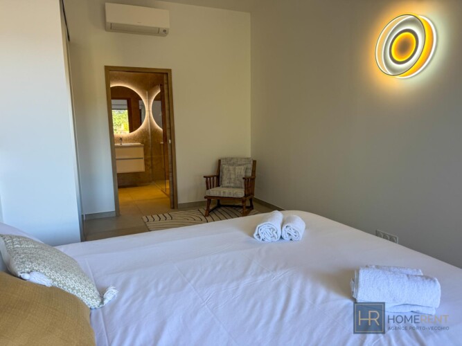 - Couloir desservant 2 chambres doubles (lits 160 cm) : L’une avec baie vitrée, moustiquaire, volets coulissants et salle de douche attenante. L’autre avec fenêtre, moustiquaire, rangements et salle de douche privative