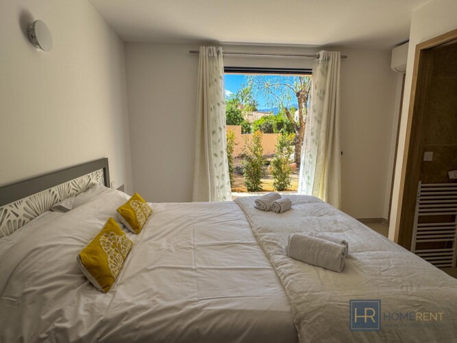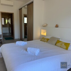 - Deux belles chambres lumineuses côté lagon, chacune avec un lit en 160 cm, placards, grande salle de douche avec WC, ouvrant sur une terrasse.