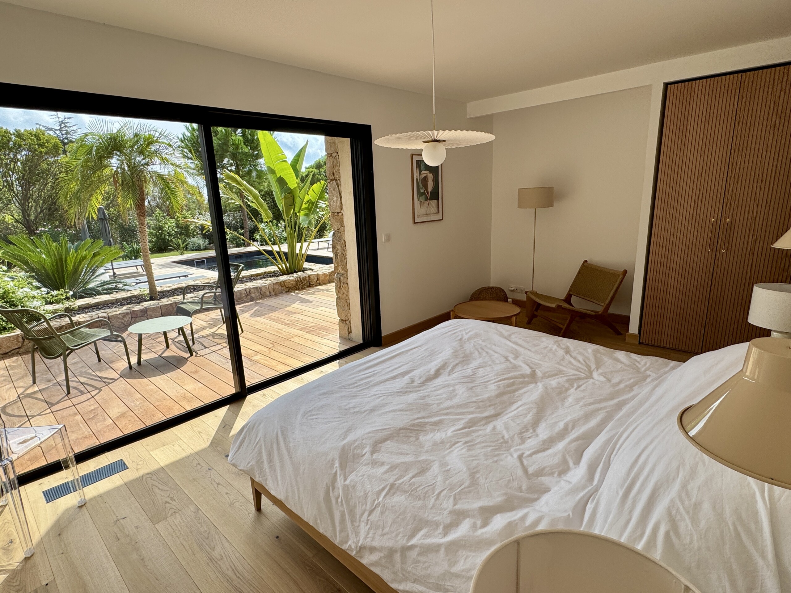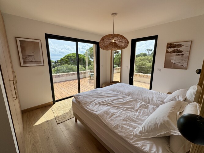 Située dans un environnement paisible, à seulement 10 minutes à pied de la plage, cette grande villa d’architecte neuve vous promet un séjour inoubliable sur l’une des plus belles côtes de Corse du Sud.