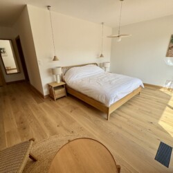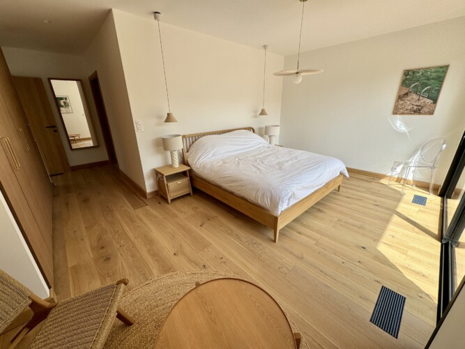 • 1 chambre master avec grand lit et salle de douche avec wc.