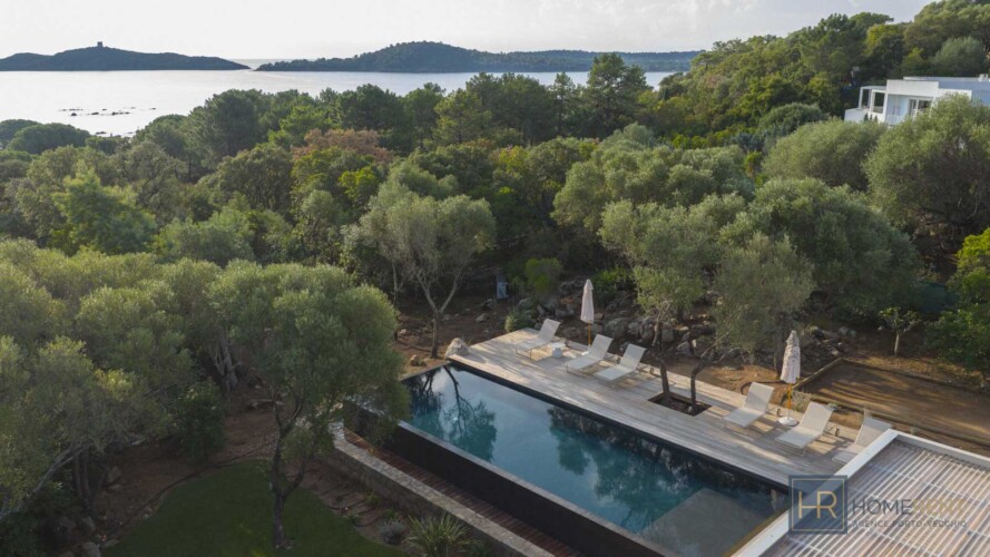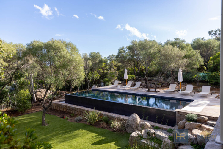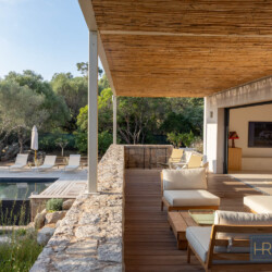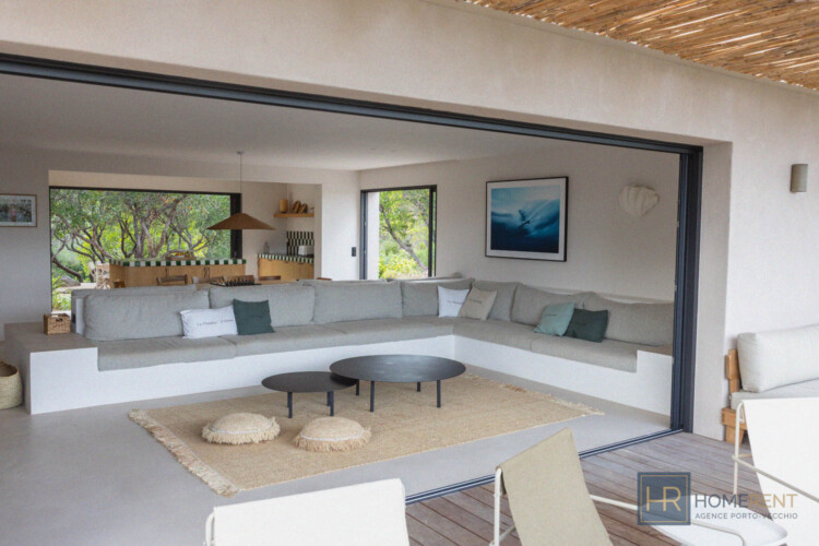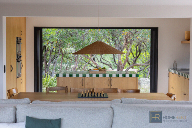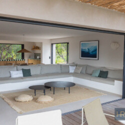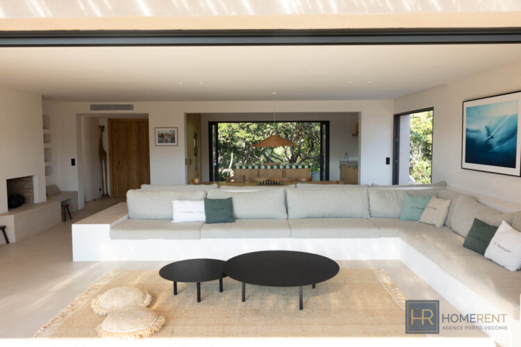 Magnifique villa contemporaine, piscine à débordement – plage à pied – Pinarello – vue mer. A deux pas du charmant village de Pinarello, à seulement 5 min à pied de la plage et des restaurants, cette villa contemporaine entièrement rénovée en 2025, offre un cadre d’exception entre mer et maquis, où chaque détail a été pensé pour des vacances inoubliables. La Villa Nichée sur un terrain paysager de 2 200 m2, la villa contemporaine bénéficie d’une vue sur la tour génoise et d’une piscine miroir à débordement de 12 x 4m, sécurisée par une alarme. Entièrement climatisée, sécurisée et fermée par un portail, elle allie confort moderne, sobriété et élégance méditerranéenne. Niveau principal :- Grand salon/salle à manger lumineux donnant sur la terrasse avec une immense ouverture grâce aux baies vitrées à galandage.