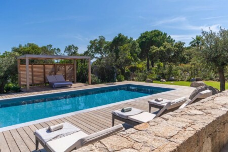 Cette villa vue mer associe des prestations hôtelières haut de gamme au charme traditionnel des maisons corses.
